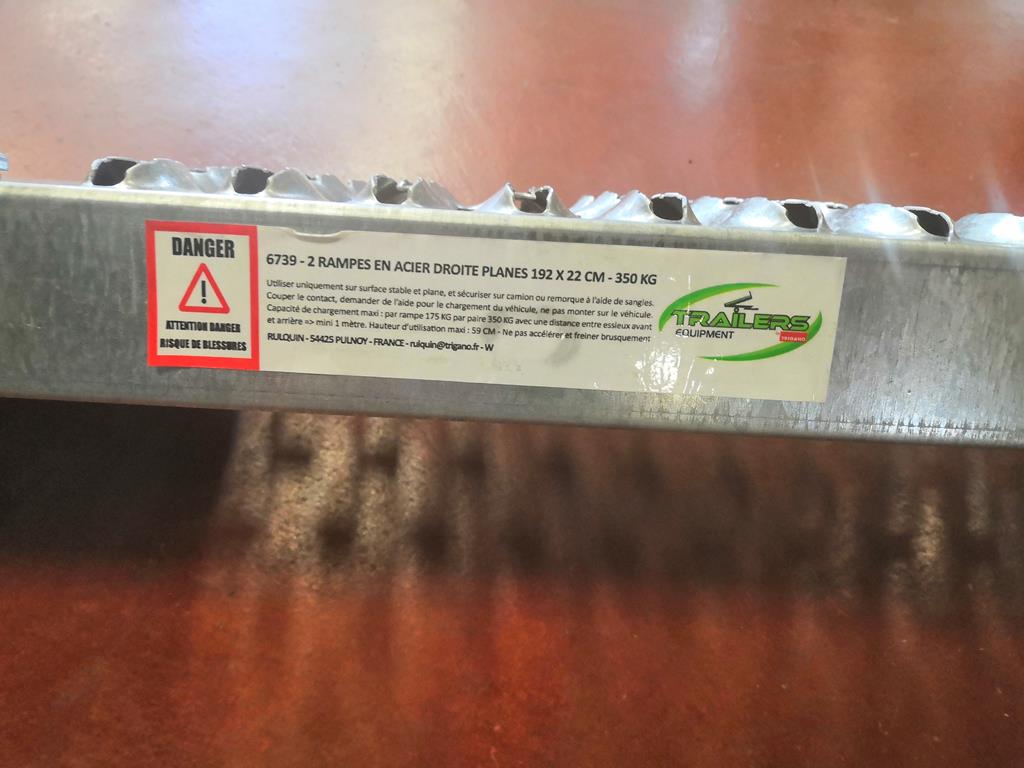 Paire de rampes galvanisées pour remorque avec une languette de maintient de 9cm.